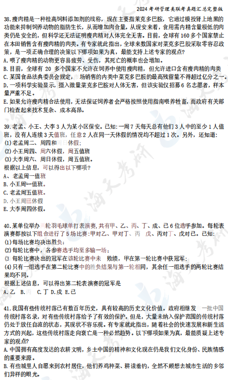 以上就是海天考研网为各位考生整理的2024考研管理类综合能力真题汇总完整版,持续为考研学子更新考研政治、数学、英语、396考研真题及答案解析等,各位考生可以根据自身需要关注收藏,及时查看完整版2024考研真题及答案解析。